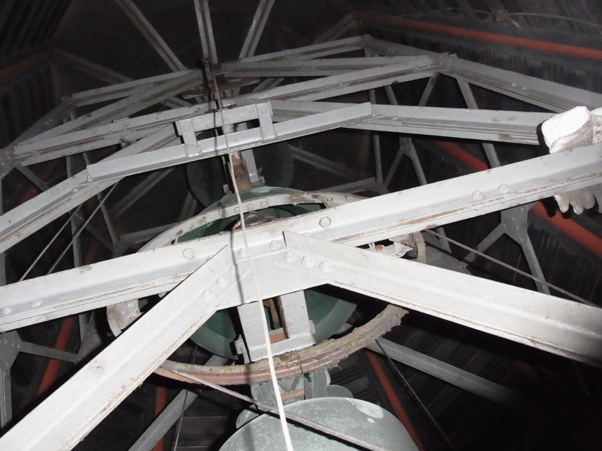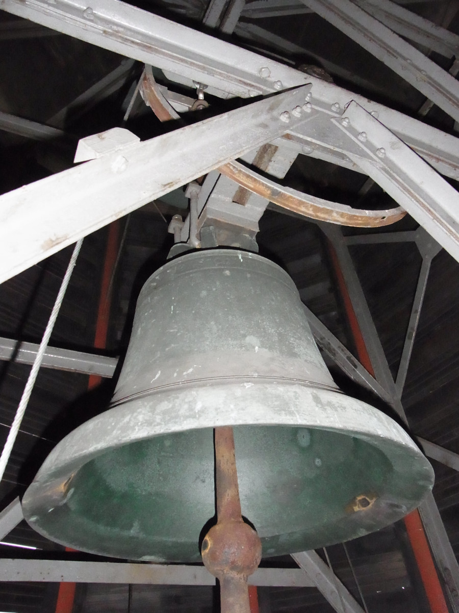 Die Turmuhr, die nachträglich installiert wurde, macht den schmalen Aufstieg zu den Glocken noch enger und fast abenteuerlich. Die moderne Zeitschaltung der Läuteanlage erleichtert unserer Küsterin das anlassbedingte Läuten der Glocken.